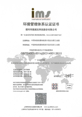 环境管理体系认证证书