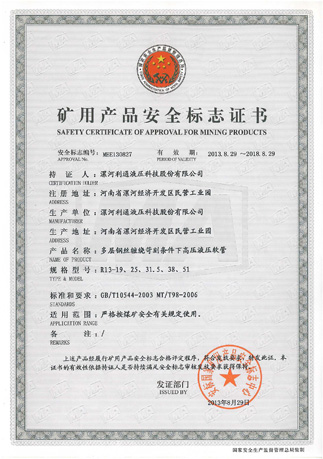矿用产品安全标志证书
